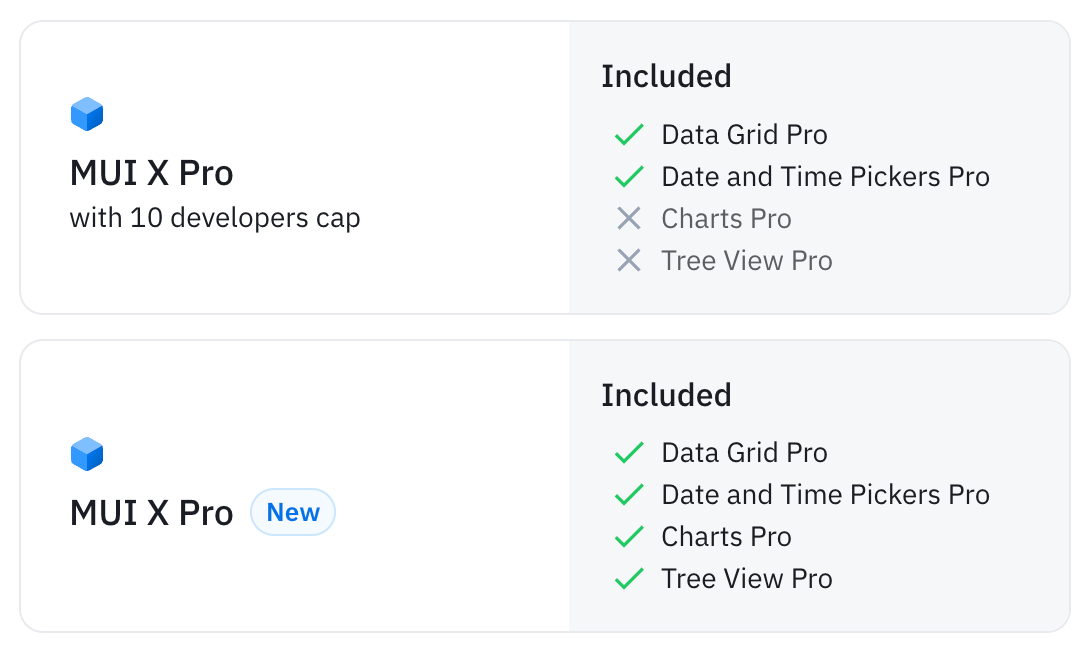 Today, we are sharing some important updates to the MUI X product offerings and pricing structure. These changes are made to reflect the expanded feature set and help support the delivering of high-quality components to you and your users.